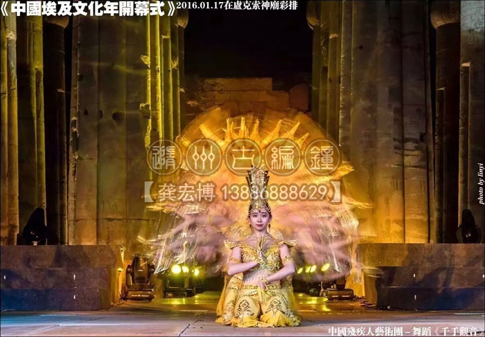 埃及當(dāng)?shù)貢r(shí)間2016年1月21日,國(guó)家主席習(xí)近平和埃及總統(tǒng)塞西在古老的盧克索神廟廣場(chǎng)共同出席中埃建交60周年慶?;顒?dòng)暨2016中埃文化年開幕式。湖北省歌舞劇院進(jìn)行編鐘表演禮樂《金石合鳴》。
